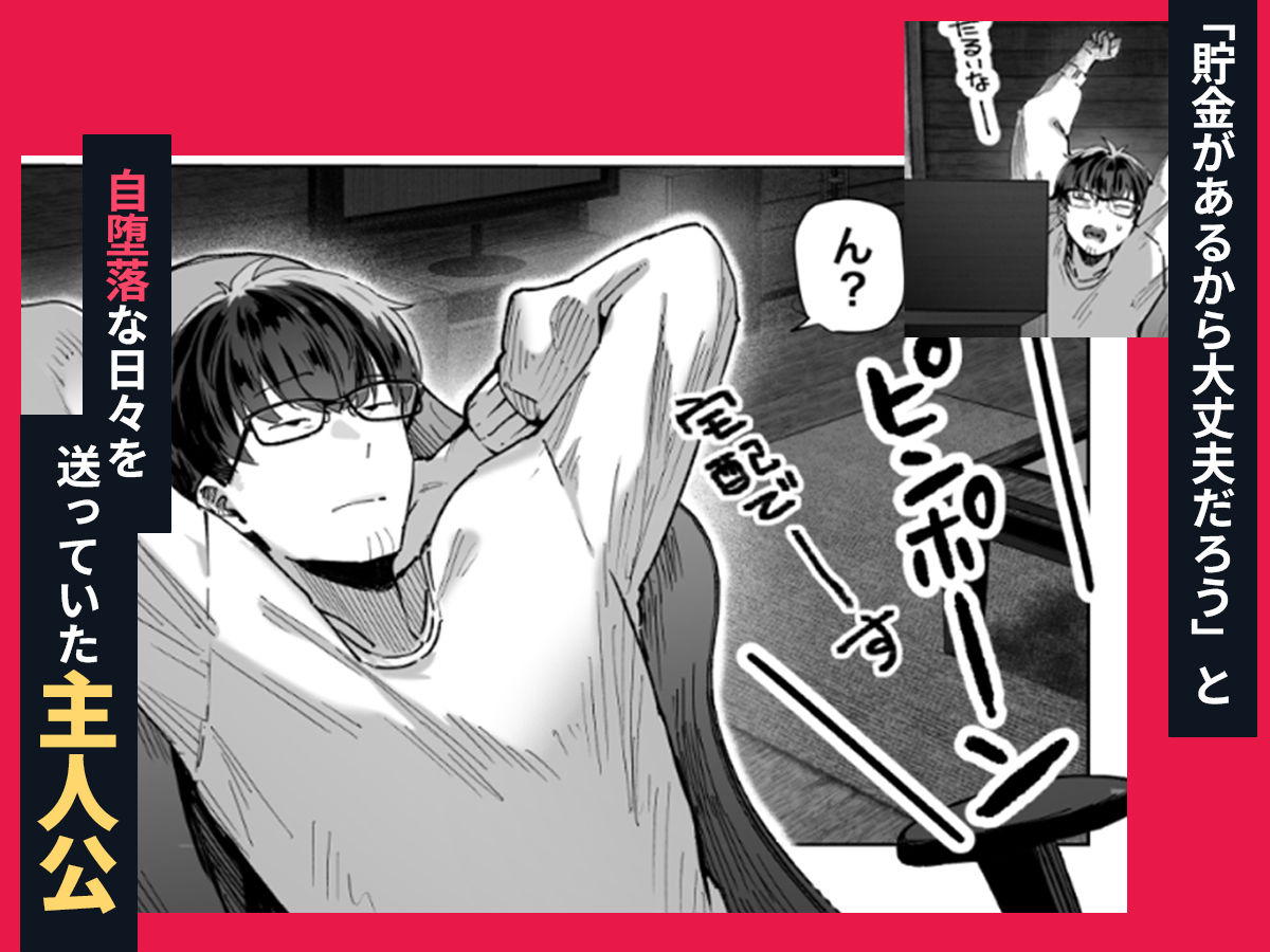 【エロ漫画】ブラック企業から退職し自堕落な生活を送る主人公の家に宅配物と共にやってきた美人な人妻!